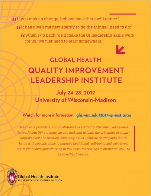 The annual Quality Improvement Leadership Institute brings together participants from Wisconsin and across the world who work with UW-Madison faculty, staff and students, and each other, to implement small changes that can improve care. Details about the 2017 QI Leadership Institute will be available soon.