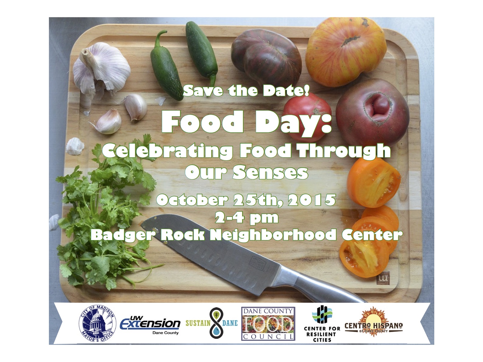 Our Madison Though My Senses is partnering with UW-Extension to celebrate Food Day. Save the date October 26 from 2 pm to 4 pm at Badger Rock Neighborhood Center. Come and taste international dishes prepared by local residents from different parts of the US and the world. Bring your family to this event created to bring community together!