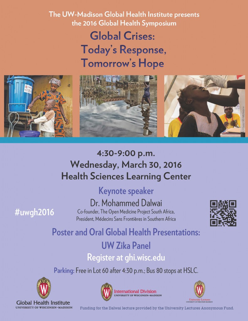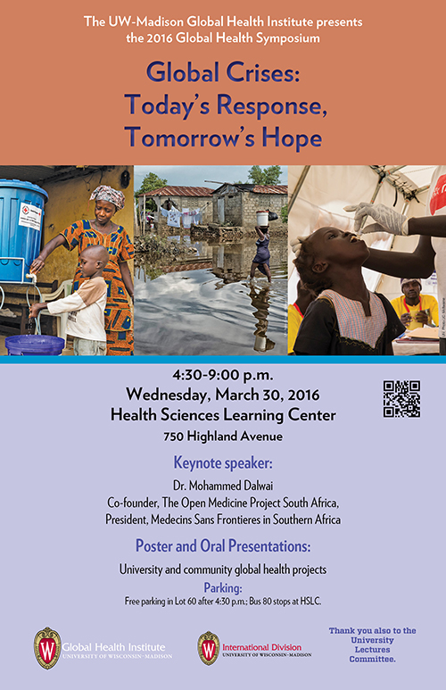 The University of Wisconsin-Madison Global Health Institute (GHI) welcomes Dr. Mohammed Dalwai, a Médicins sans Frontières (Doctors Without Borders) veteran, South African emergency physician and tech innovator, as the keynote speaker for the 2016 Global Health Symposium—Global Crises: Today’s Response, Tomorrow’s Hope.