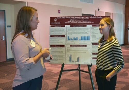 Students and faculty from disparate schools and departments – from Engineering and Environmental Studies to Journalism and Real Estate – filled the Lake Mendota Room of Dejope Residence Hall with poster boards detailing how best to improve their community. In all, 26 projects were completed and presented.