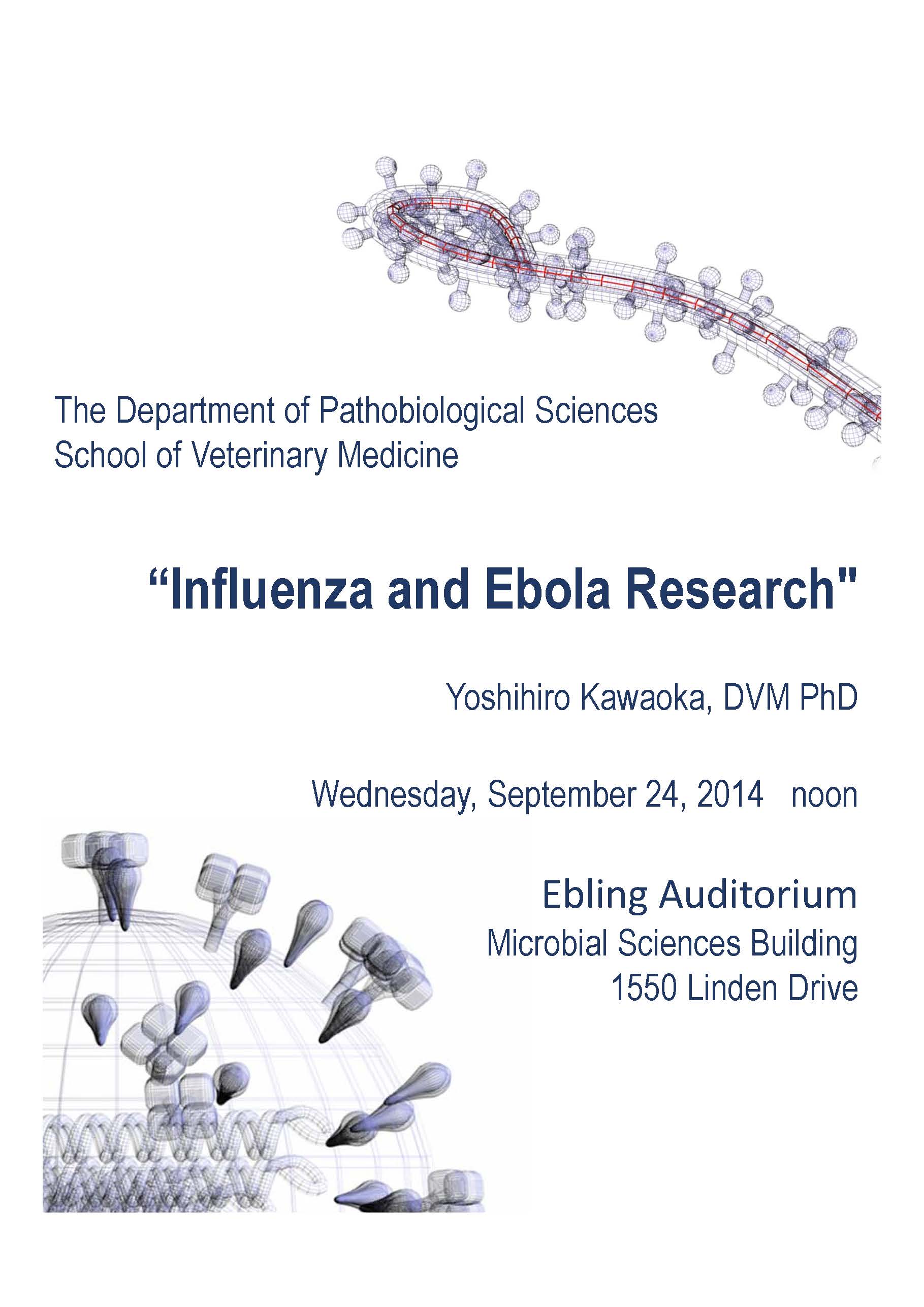 Influenza and Ebola Research with Yoshihiro Kawaoka September 24, 2014 The Department of Pathobiological Sciences in the School of Veterinary Medicine presents “Influenza and Ebola Research.” Post navigation << previous postnext post >>