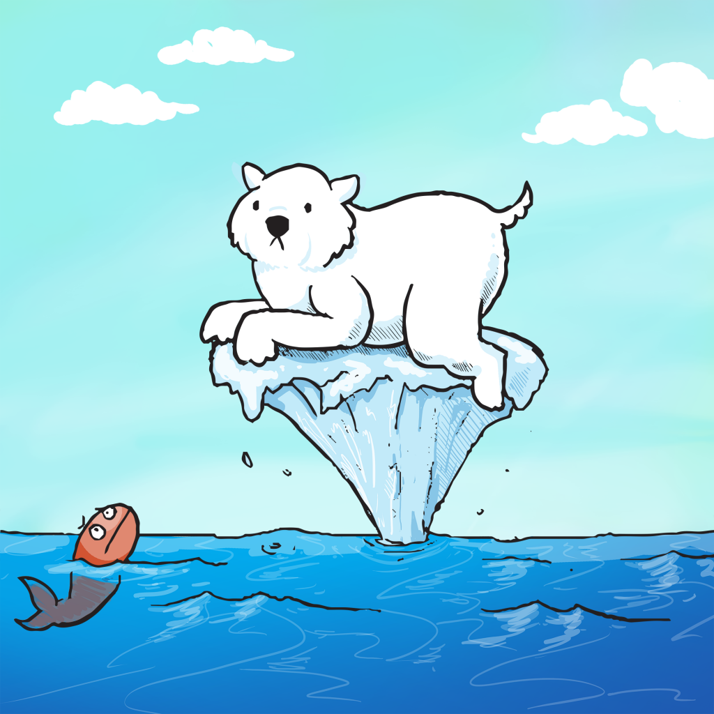 Research assistant Andrew Stevens came up with the idea of using a polar bear clinging to a small iceberg to represent the impacts of the chosen activities. The more carbon units and energy saved, the larger the iceberg becomes, Wong says.