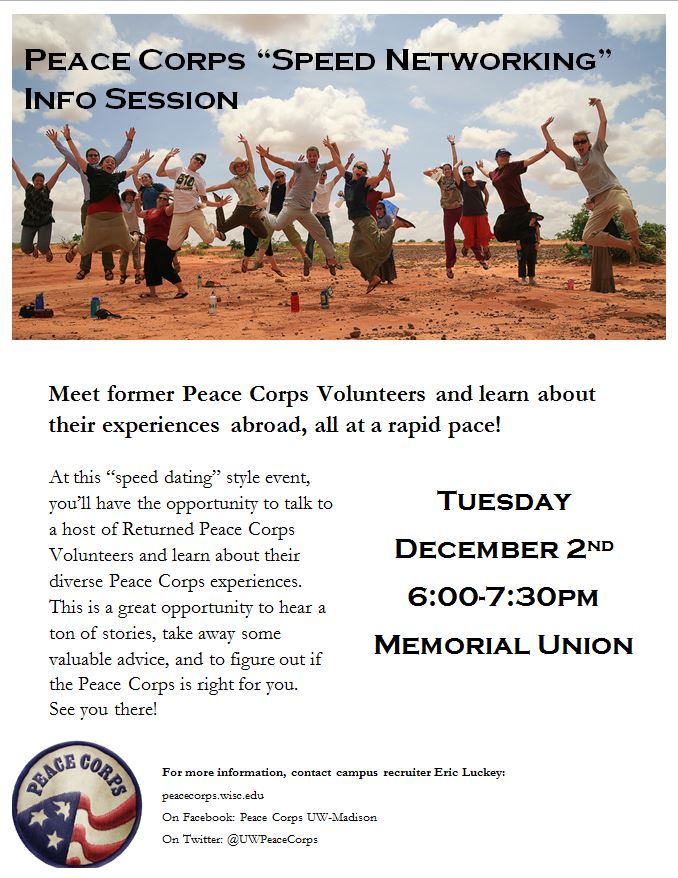 At this “speed-dating” style event, you’ll have the opportunity to talk to a host of Returned Peace Corps Volunteers and learn about their diverse Peace Corps experience. This is a great opportunity to hear a ton of stories, take away some valuable advice, and to figure out of the Peace Corps is right for you.