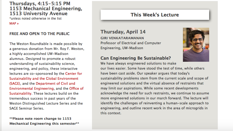 We have always engineered solutions to make our lives easier. Some have stood the test of time, while others have been cast aside. Our speaker argues that today’s sustainability problems stem from the current scale and scope of engineered solutions and the virtual absence of restraints that may limit our aspirations. While some recent developments acknowledge the need for such restraints, we continue to assume more engineered solutions in our march forward. The lecture will identify the challenges of reinventing a human-scale approach to engineering, and outline recent work in the area of microgrids in this context.