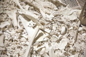 Bones of animals from necropsies sent through the tissue digester after testing at Wisconsin Veterinary Diagnostic Laboratory. PHOTO: HYUNSOO LÉO KIM